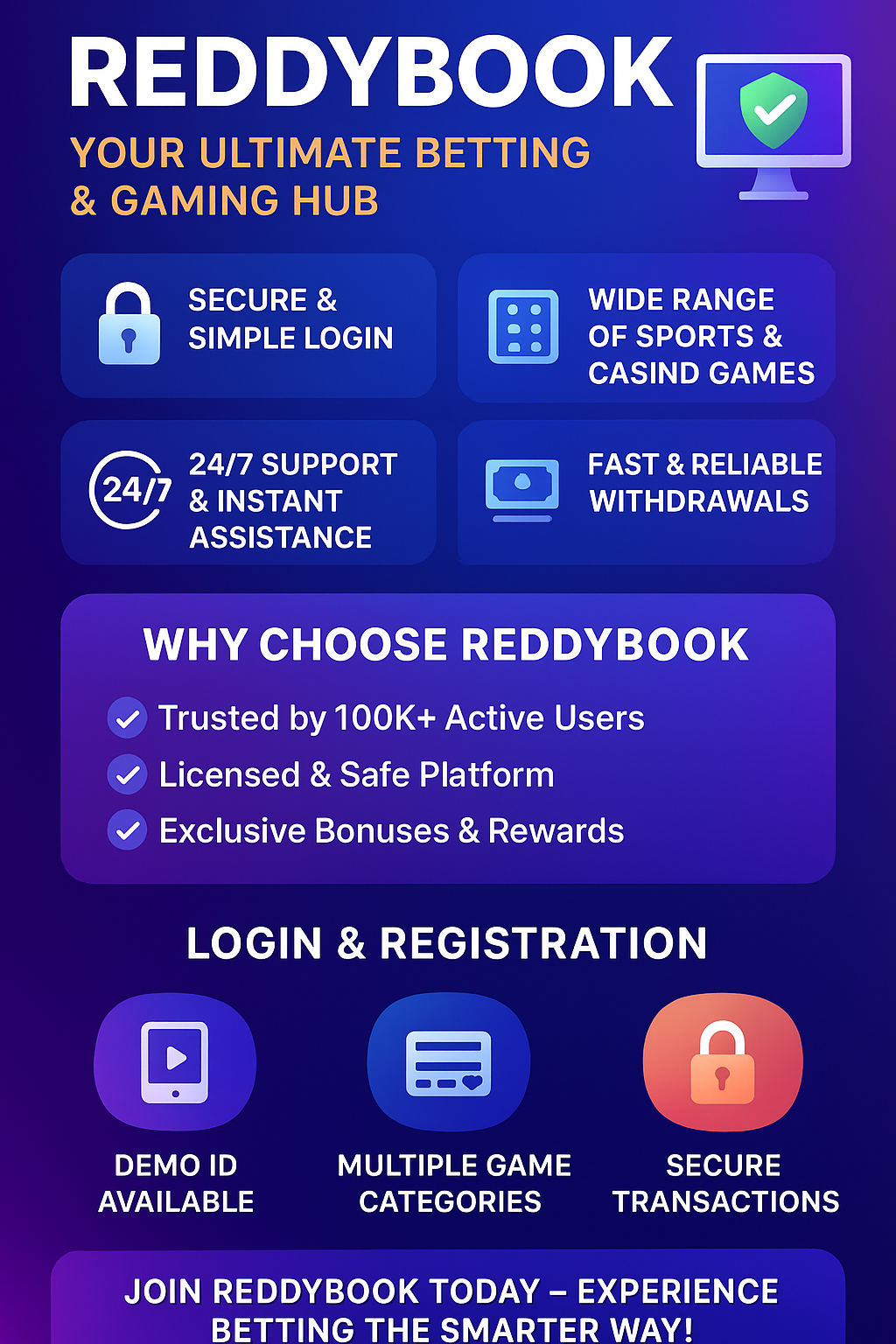 Reddybook combines simplicity, security, and variety to deliver a reliable online betting experience. Whether you are signing up for the first time or logging in to place your bets, the platform ensures smooth navigation and protected transactions.